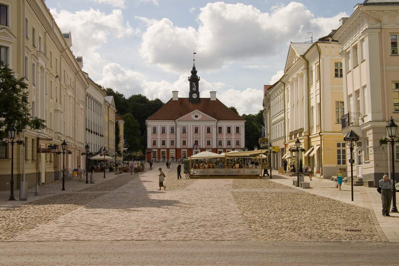 The town Hall Square is beautiful. A bell on the tower of the Town Hall is playing a melody at midday. Next to the square flows the river Emajogi – the largest river in Estonia.