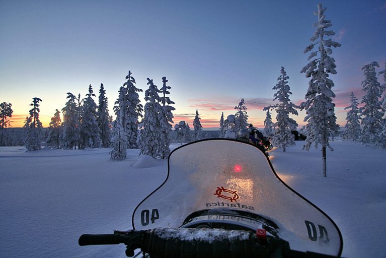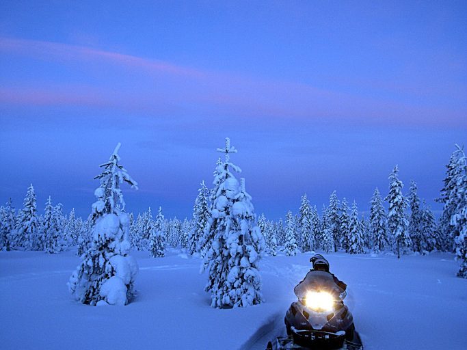 Проникнитесь духом волшебной Лапландии, покатавшись по заснеженным спящим лесам и замерзшим озерам на снегоходе.